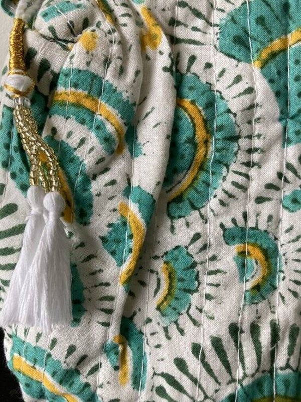 Gemaakt van katoen en de binnenkant is geplastificeerd en afneembaar met een doekje.