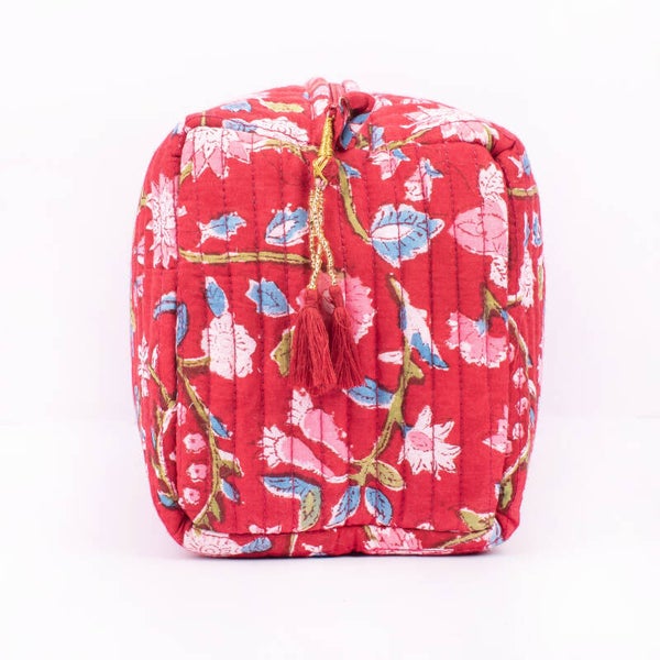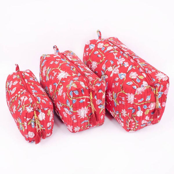 Toilettas - rood met bloemen - large