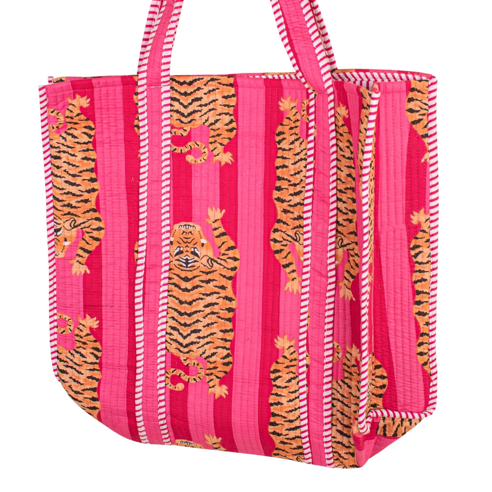 Bohemian schoudertas - Tote Bag - fuchsia met tijgers