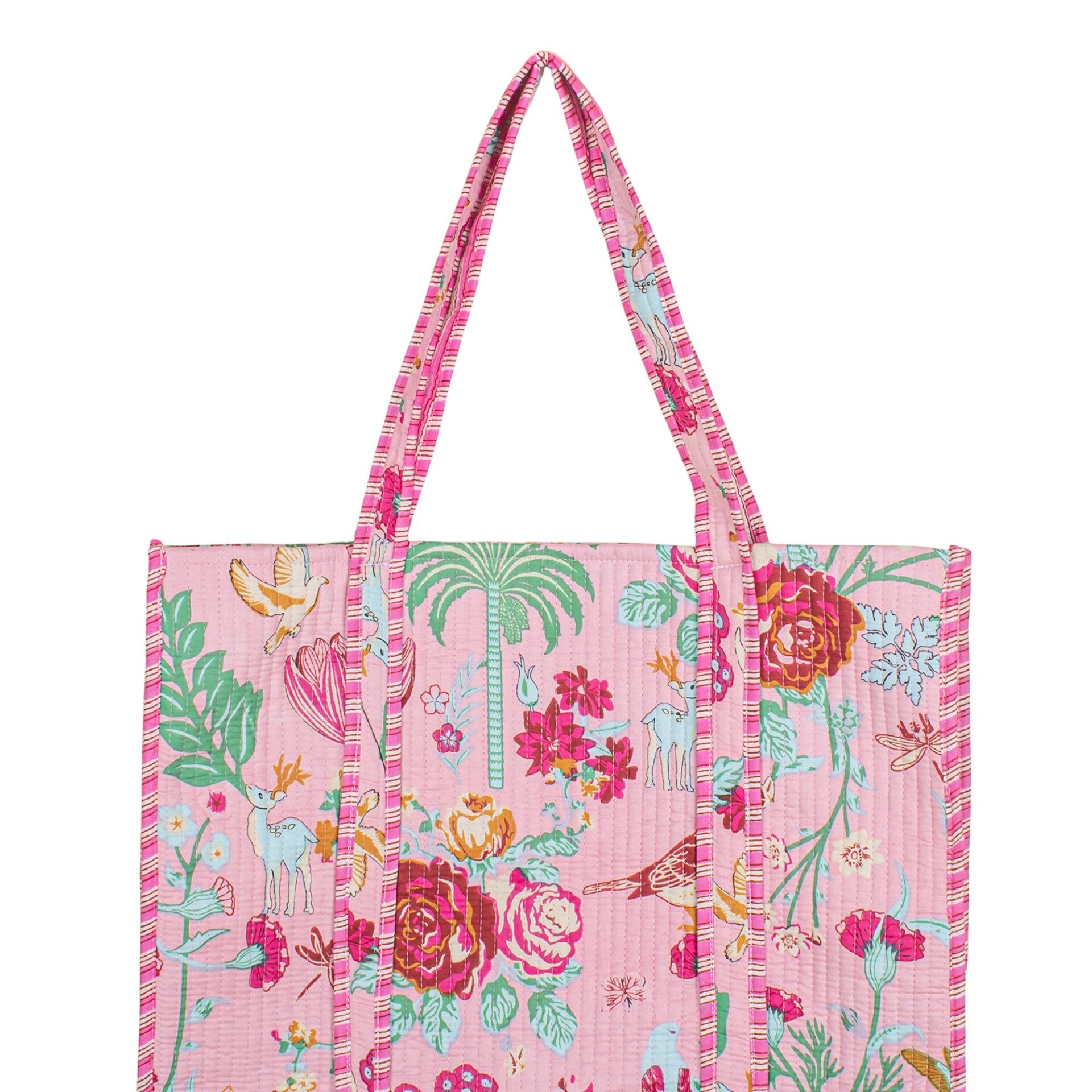 Bohemian schoudertas - Tote Bag - lichtroze met bloemen